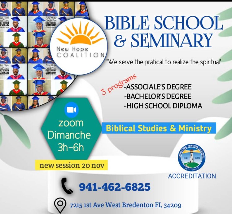 It has been a privilege to assist in the ministry of Pastor Odman Charles in the Bradenton area where I have had the blessing to participate in leadership training, preach, and also train as a professor under his leadership for Cornerstone Christian University. The curriculum is 24 books in French and Creole and for those who want to have a deeper knowledge of the Bible, theology and practice of church life. For those wishing to fulfill the will of the Lord in their lives and serve. For those to have a responsiblity or a desire to have in a church or work.